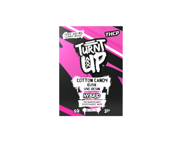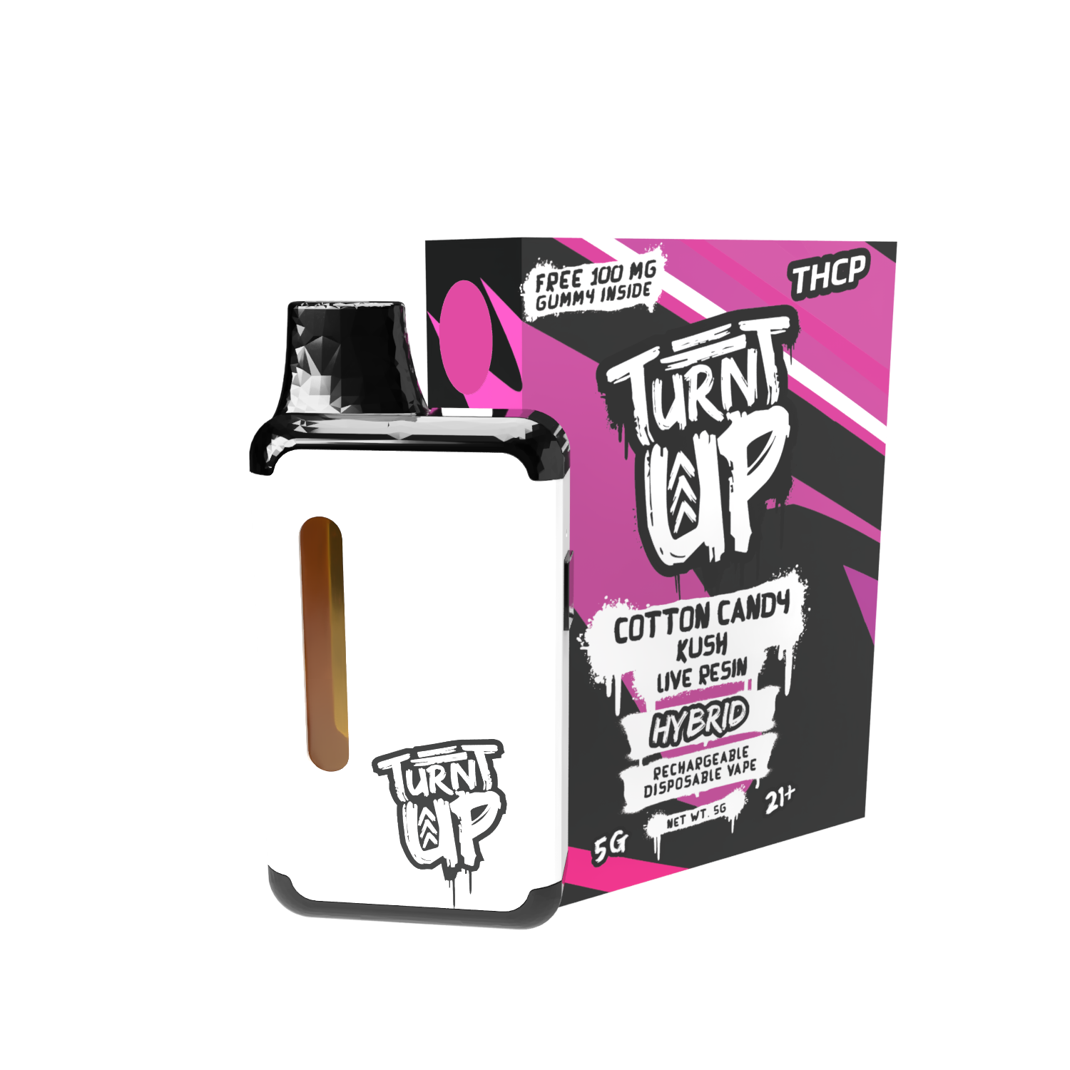 Introducing our revolutionary 5G THCP Disposable with Live Resin, now available in the delightful Cotton Candy Kush flavor. Crafted for the discerning connoisseur, with the potency of THCP and the sweet essence of live resin.