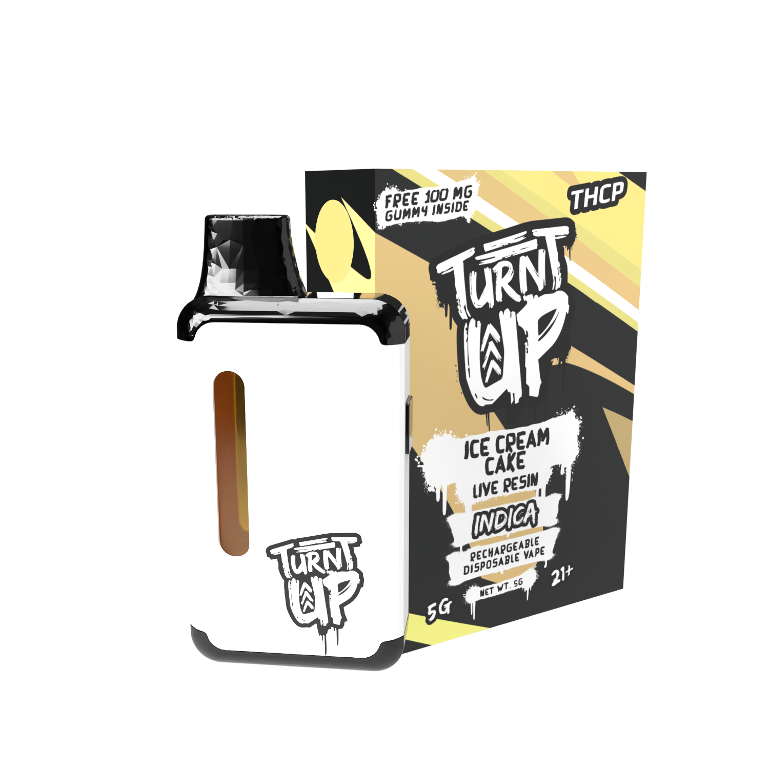 Introducing our latest innovation in vaping technology: the 5G THCP Disposable with Live Resin in the tantalizing Ice Cream Cake flavor. Designed for connoisseurs seeking a premium experience, with the potency of THCP and the rich flavor of live resin.