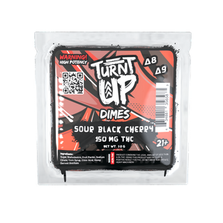Introducing our Turnt Up Dime Gummy in Sour Black Cherry, a tantalizing blend of Delta 8 and Delta 9 cannabinoids crafted to elevate your experience. With each delectable gummy, indulge in the mouthwatering flavor of sour black cherry while enjoying the combined benefits of these potent cannabinoids.